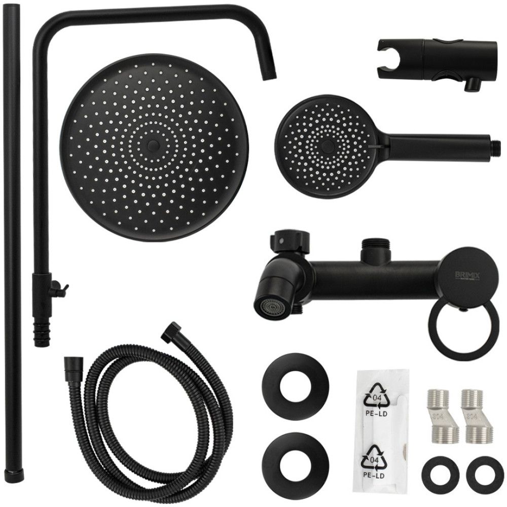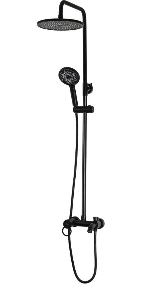 Смеситель + стойка душевая "тропический душ" с двумя лейками в ванную, чёрного цвета.