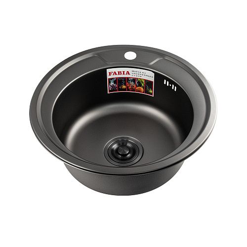 Врезная мойка FABIA из нержавеющей стали толщиной 0,8 мм – отличный вариант для кухни , она прослужит многие годы. Классическая форма и цвет под ГРАФИТ гармонично впишутся в любой интерьер и никогда не выйдут из моды. Оптимальный размер диаметром 49 см и глубина 180 мм позволяет свободно помыть посуду, без страха её разбить. Мойка врезается в столешницу . Специальное дополнительное антишумовое покрытие , нанесенное на обратную сторону чаш, разработано для снижения шума воды в мойке.Конструкция краев мойки, крепления и специальная уплотнительная прокладка обеспечивает максимально плотное прилегание к столешнице и защищает от протекания.Практичная площадка, расположенная по центру , даёт возможность вмонтировать любую понравившуюся модель смесителя. В комплекте сифон с большой горловиной с переливом , крепёж Вес - 2,700 кг , объём -0 ,01301 м3 Гарантия: 5 лет