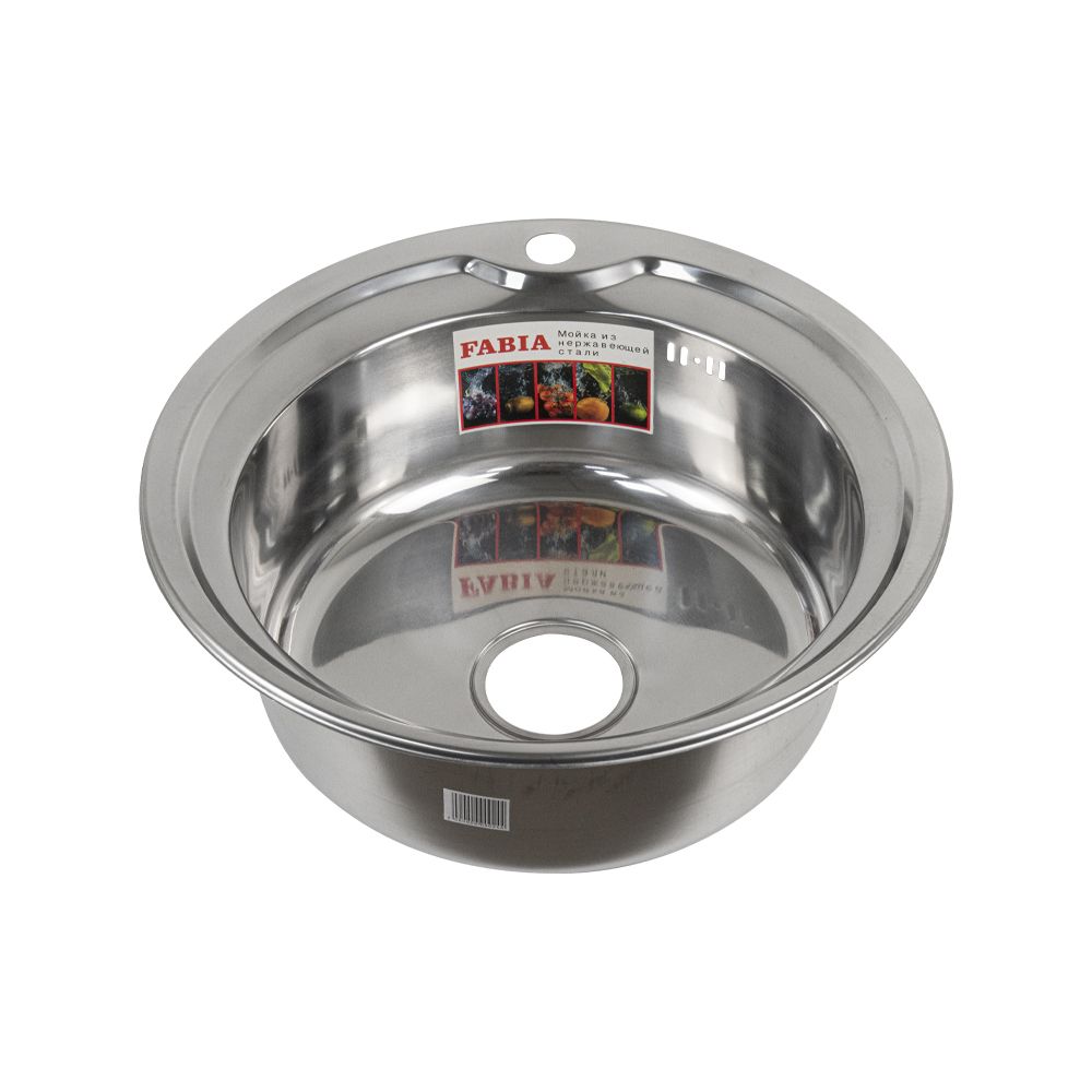 Врезная мойка FABIA из нержавеющей стали толщиной 0,6 мм – отличный вариант для кухни, она прослужит многие годы. Классическая форма и хромированный цвет гармонично впишутся в любой интерьер и никогда не выйдут из моды. Оптимальный размер диаметром 51 см и глубина 160 мм позволяет свободно помыть посуду, без страха её разбить. Мойка врезается в столешницу . Специальное дополнительное антишумовое покрытие, нанесенное на обратную сторону чаш, разработано для снижения шума воды в мойке.Конструкция краев мойки, крепления и специальная уплотнительная прокладка обеспечивает максимально плотное прилегание к столешнице и защищает от протекания. Практичная площадка, расположенная по центру, даёт возможность вмонтировать любую понравившуюся модель смесителя. В комплекте сифон с большой горловиной с переливом, крепёж. Вес - 2,100 кг, объём -0 ,01285 м3 Гарантия: 5 лет