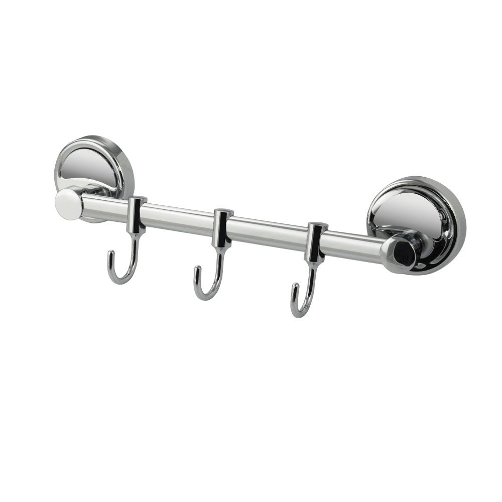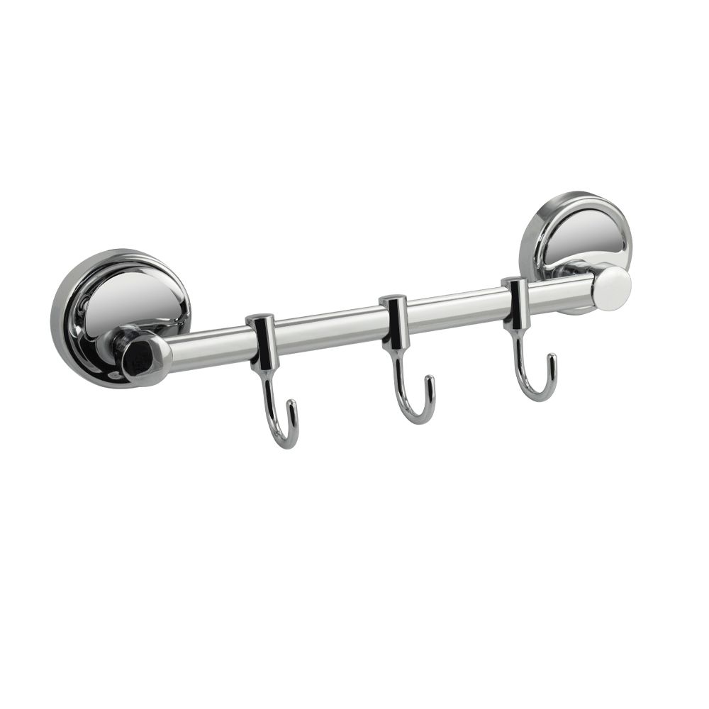 Держатель для полотенец металлический, хромированный с тремя подвижными крючками.