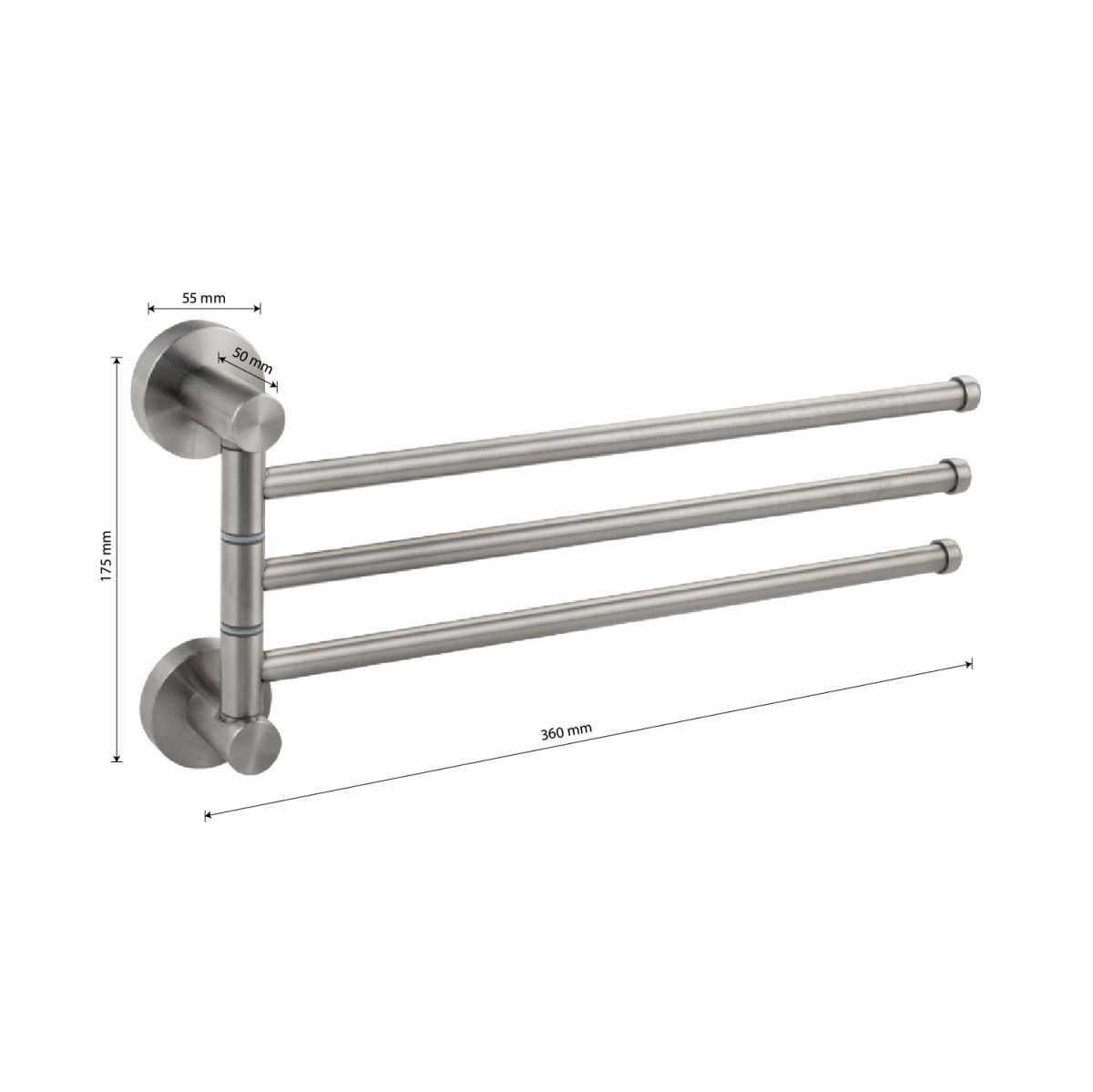 Держатель для полотенец, металлический, поворотный, с тремя раздвижными перекладинами, с двойным креплением.