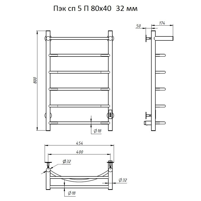 Полотенцесушитель электрический ТРУГОР 400*800 ПЭК СП5 с полкой
