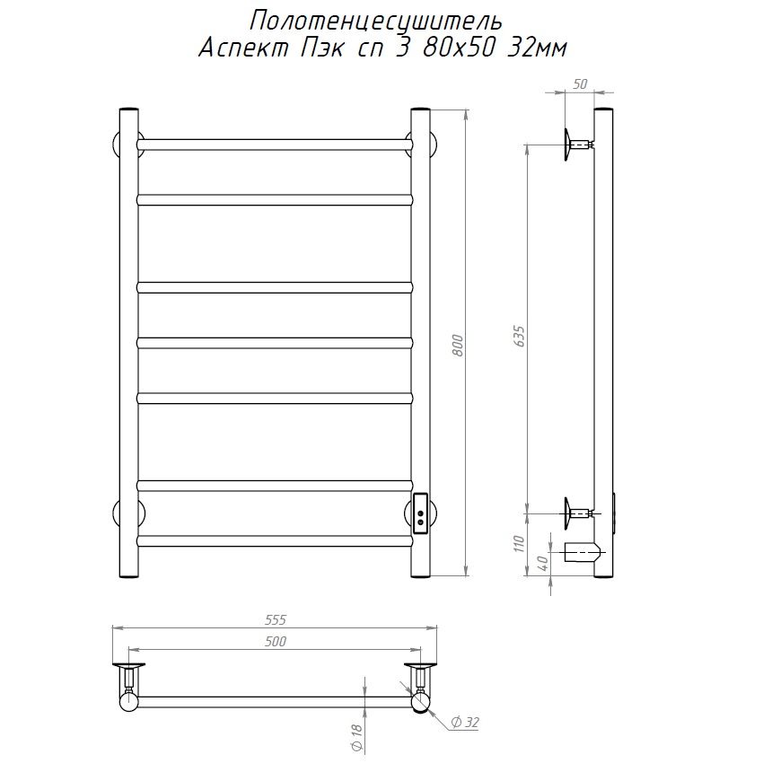 Полотенцесушитель электрический ТРУГОР 500*800 Аспект Лесенка
