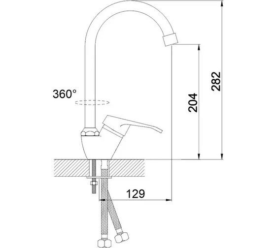 В комплекте: гибкая подводка ½ дюйма 350 мм – 2 шт., монтажный комплект – шпилька