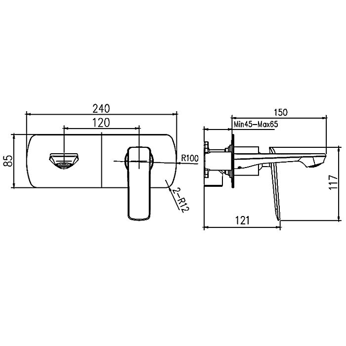 Смеситель для раковины Haiba рычажный встраиваемый черный/хром HB80548-7