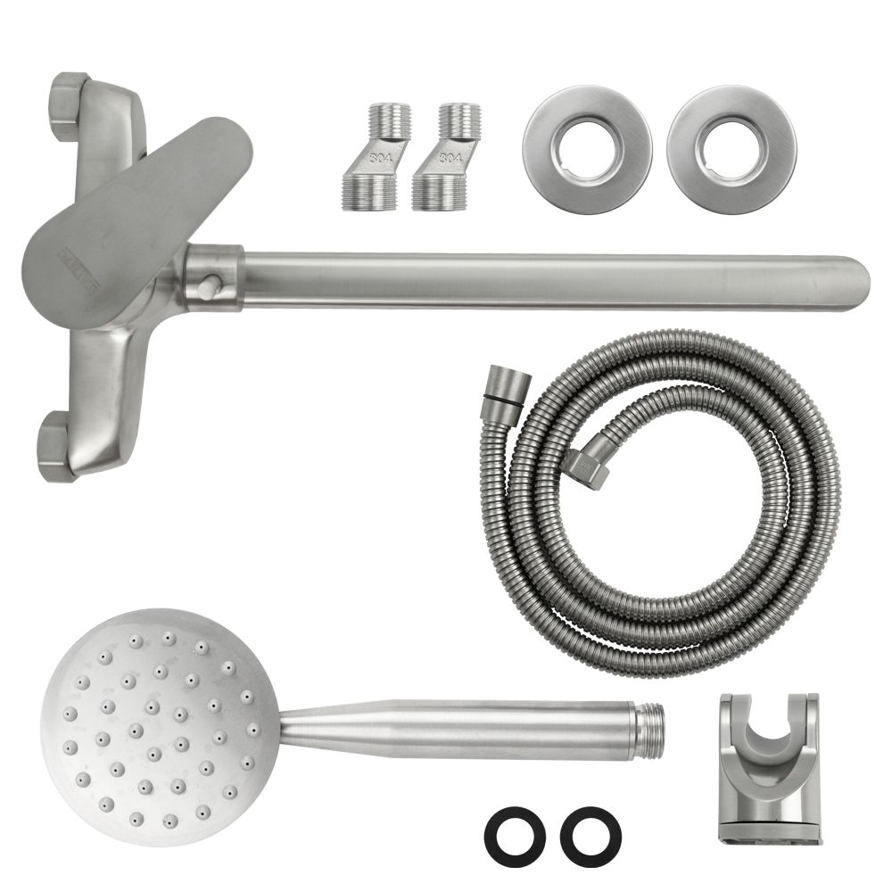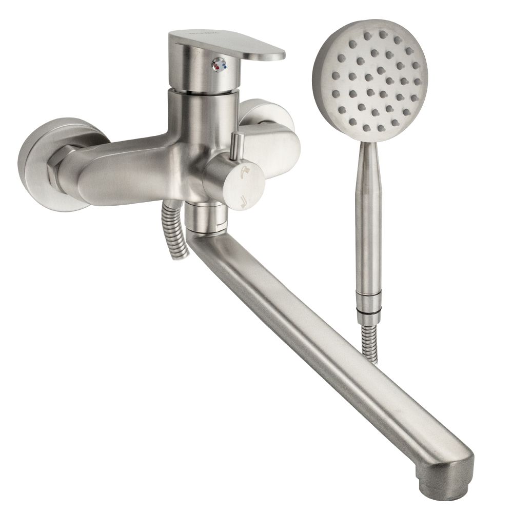 Смеситель матовый, из нержавеющей стали марки 304 в ванную / душевую комнату, с поворотным длинным плоским изливом.