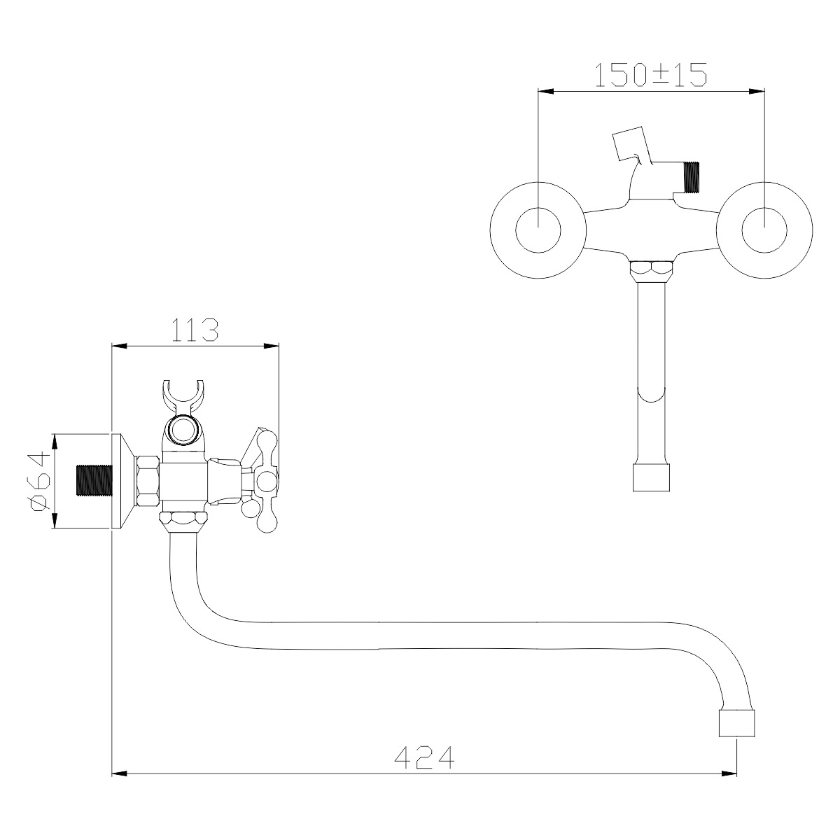 Длина излива - 424 мм