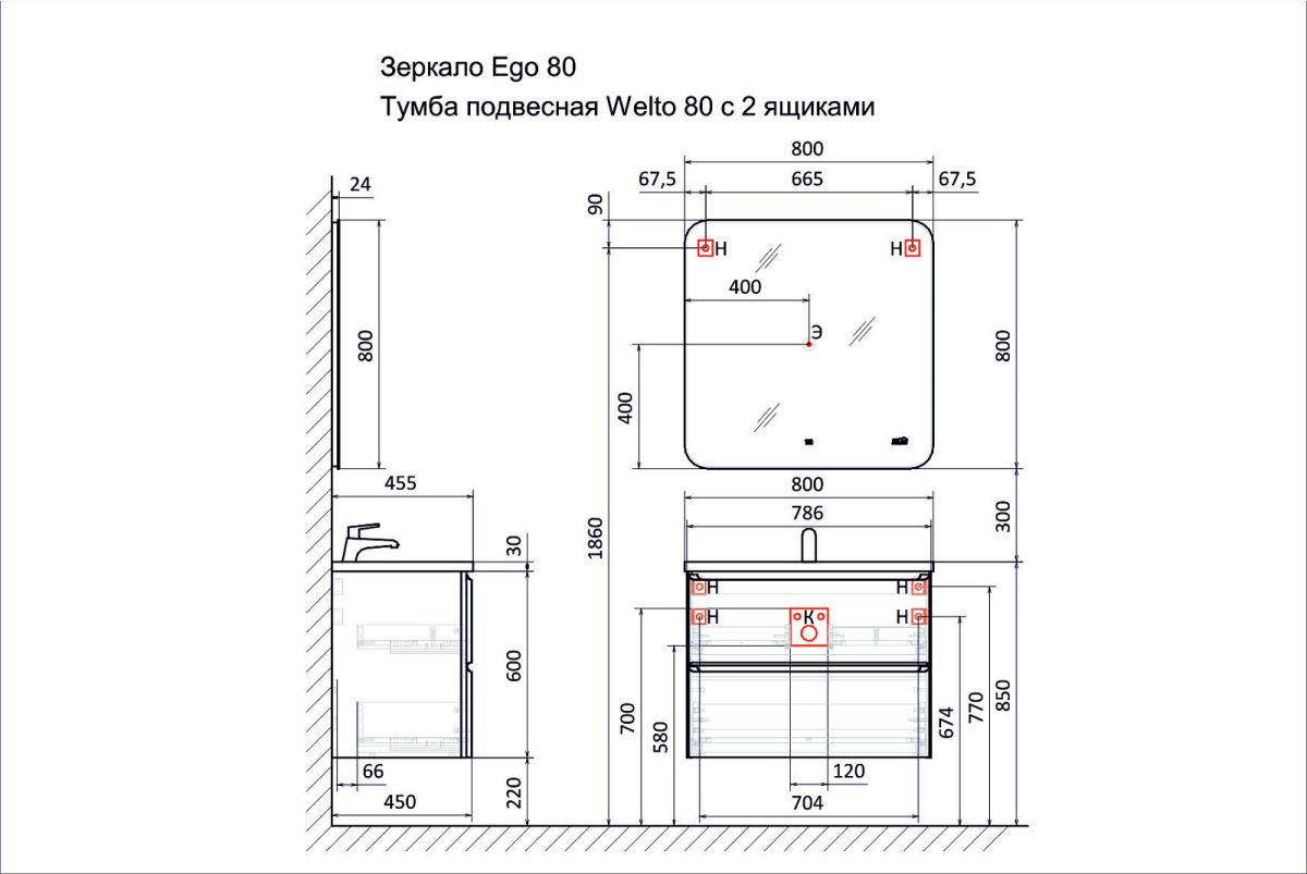 Тумба с раковиной RAVAL WELTO подвесная 800*600*450мм