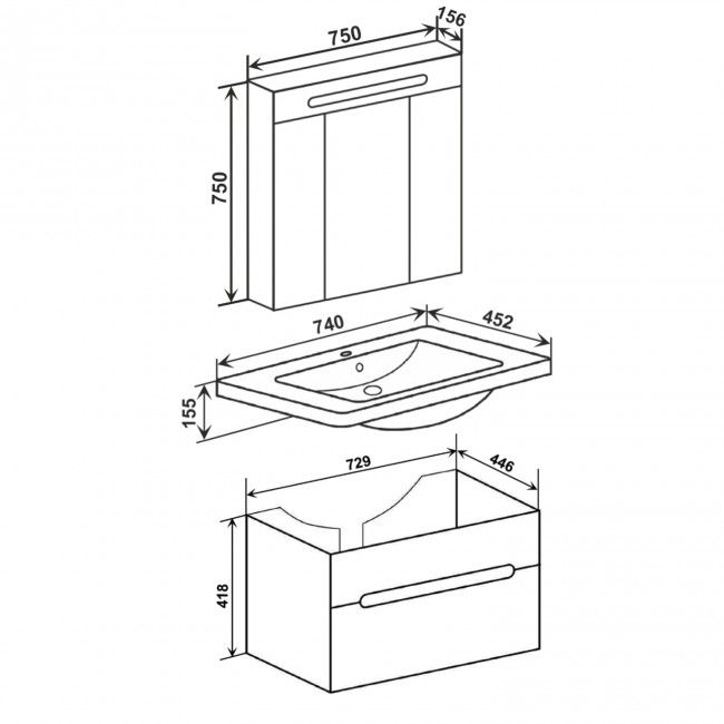 Тумба с раковиной RUNO ПАРМА подвесная 740*460*452мм