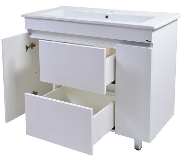 Тумба с умывальником имеет 2 ящиками и2 дверьми.