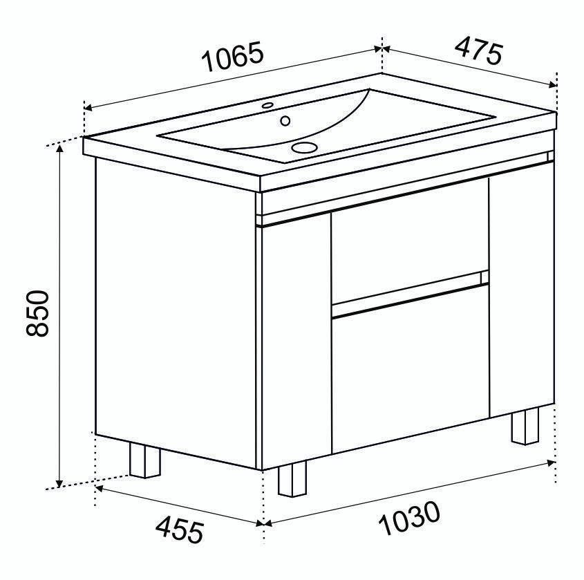 Тумба с раковиной ЭММИ ДЖЕРСИ 1065*850*475мм