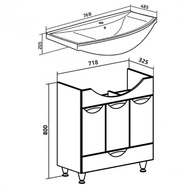 Тумба для ванной комплектуется керамической раковиной "Стиль" (760*490 мм).