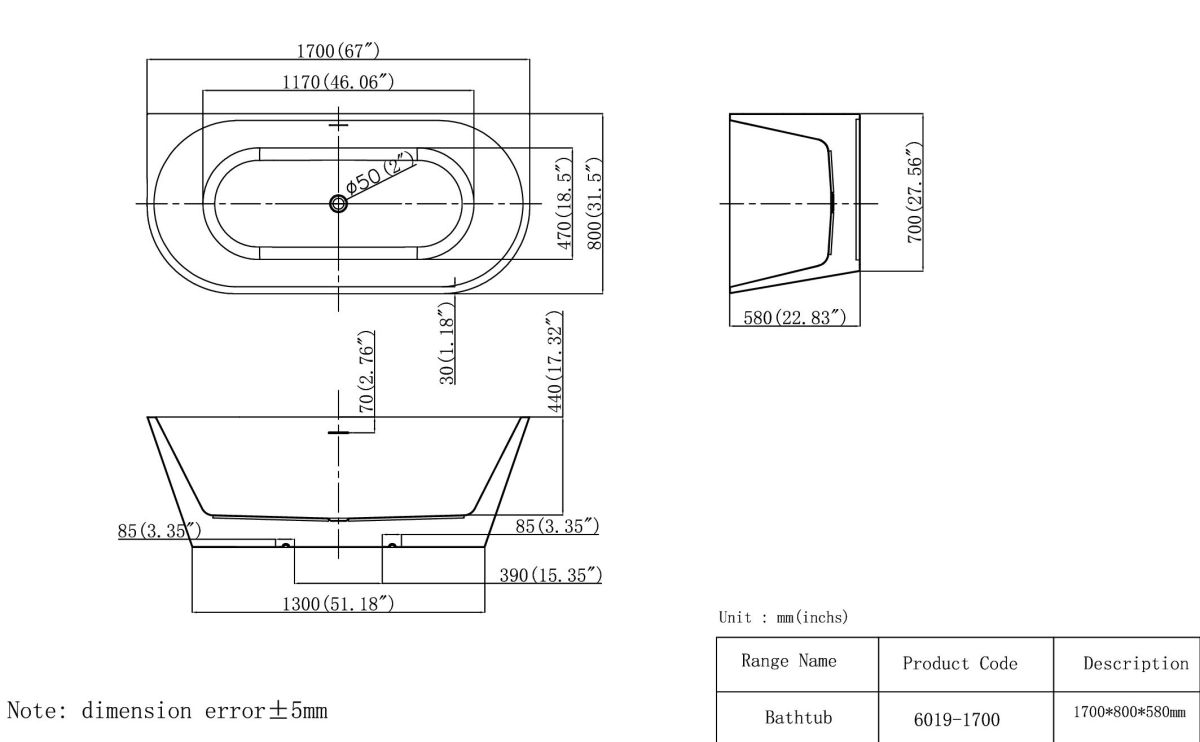 Ванна акрил ZILI DO WB-6019 1700*800*580мм