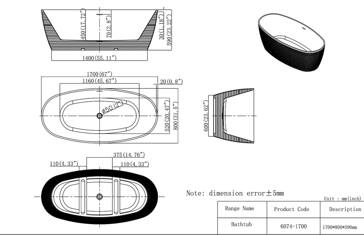 Ванна акриловая отдельностоящая.
