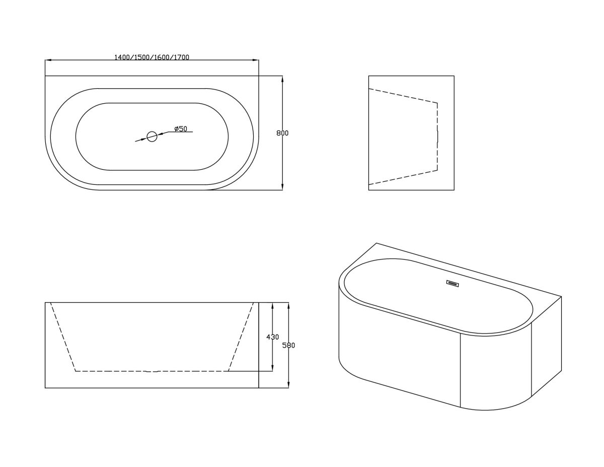 Ванна акриловая отдельностоящая.