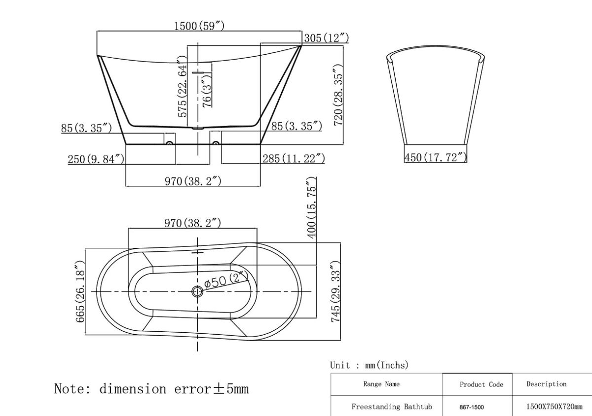 Ванна акрил ZILI DO WB-867 1500*750*720мм