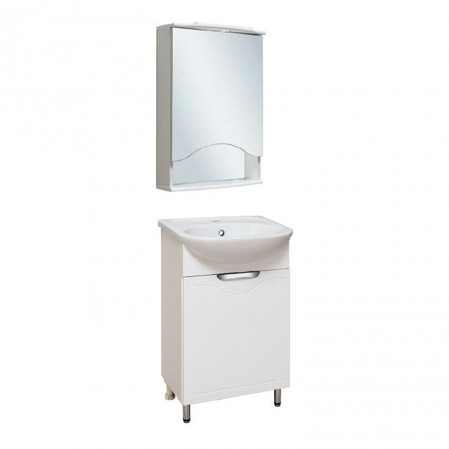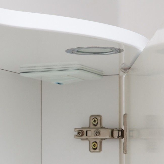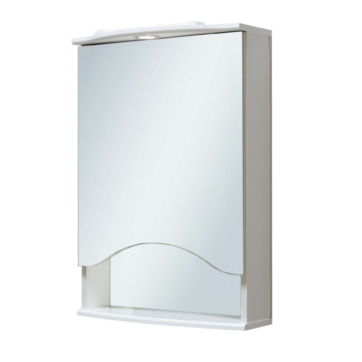 Зеркальный шкаф оборудован одним врезным светодиодным светильником 220В и розеткой с выключателем.