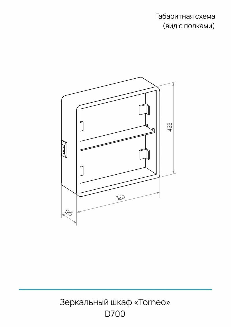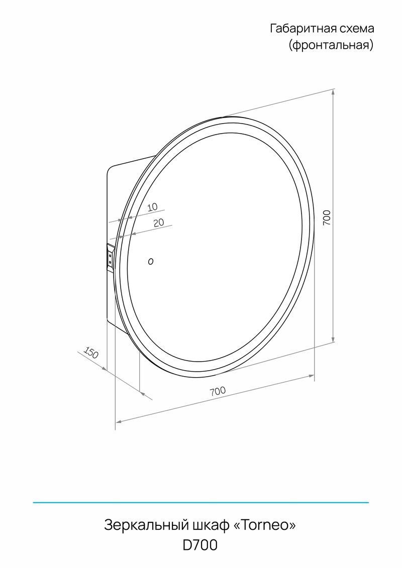 Зеркальный шкаф TORNEO BLACK с розеткой ШВГ: 700*700*150мм