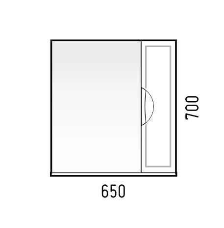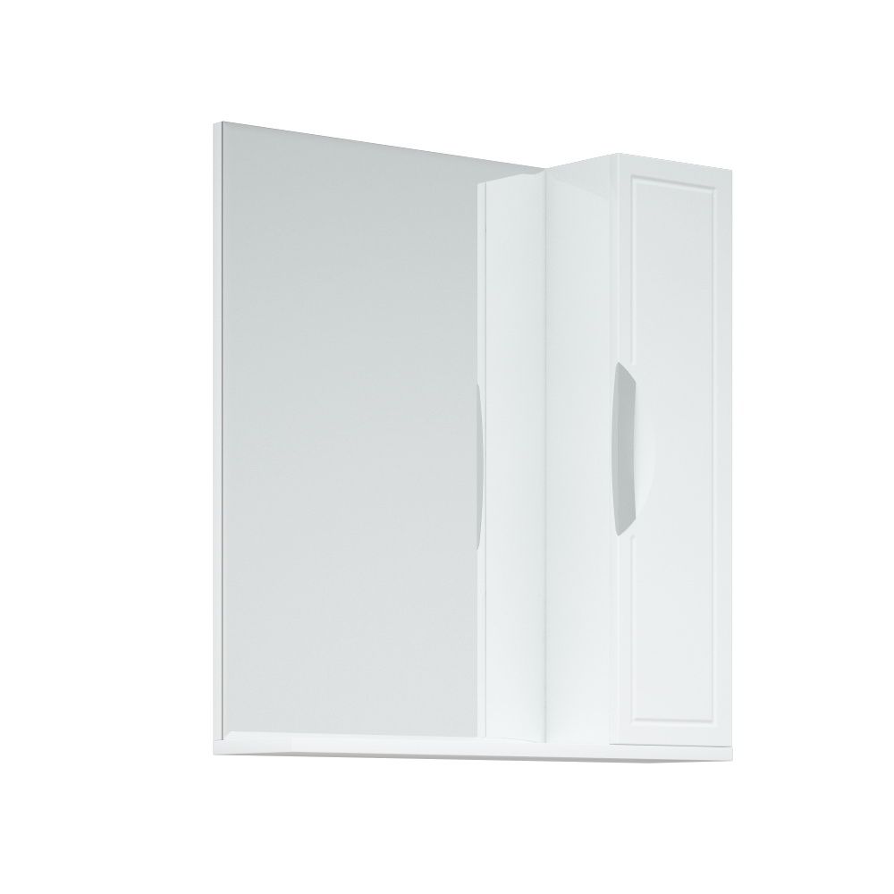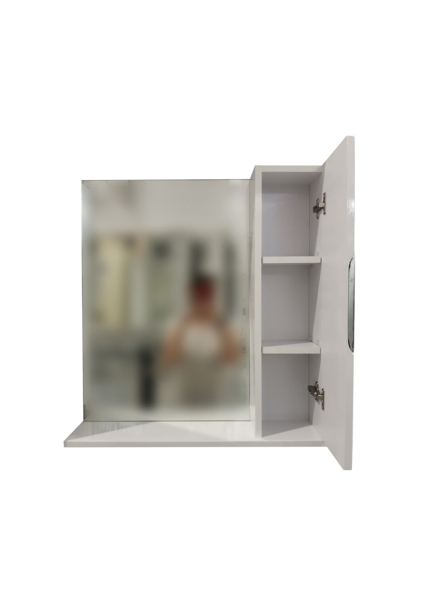 У зеркала-шкафа справа ниша закрытая дверцей, слева зеркало, снизу полка.