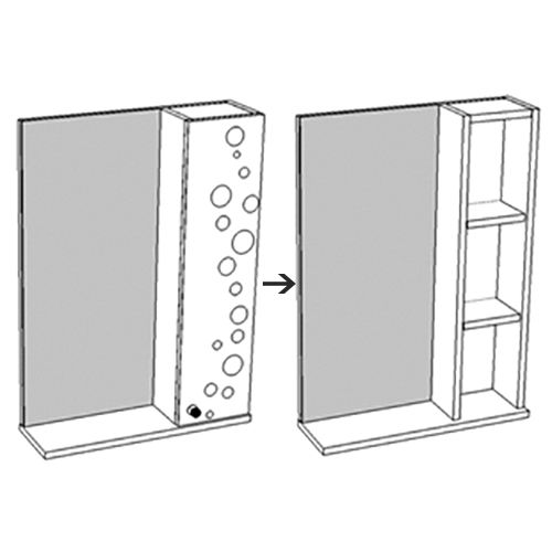 Шкаф оснащён распашной дверью справа, слева зеркало.
