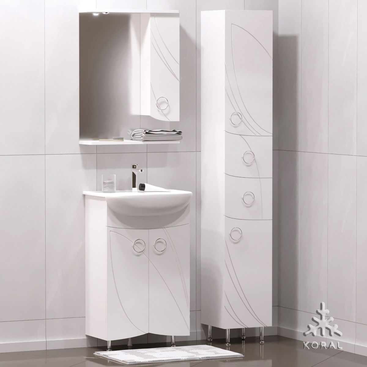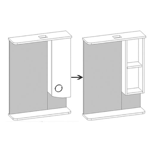 Шкаф оснащён распашной дверью справа, слева зеркало.