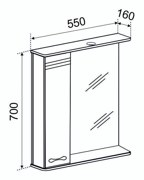 Зеркало со шкафчиком. Один светитильник с блоком розетка/выключатель.