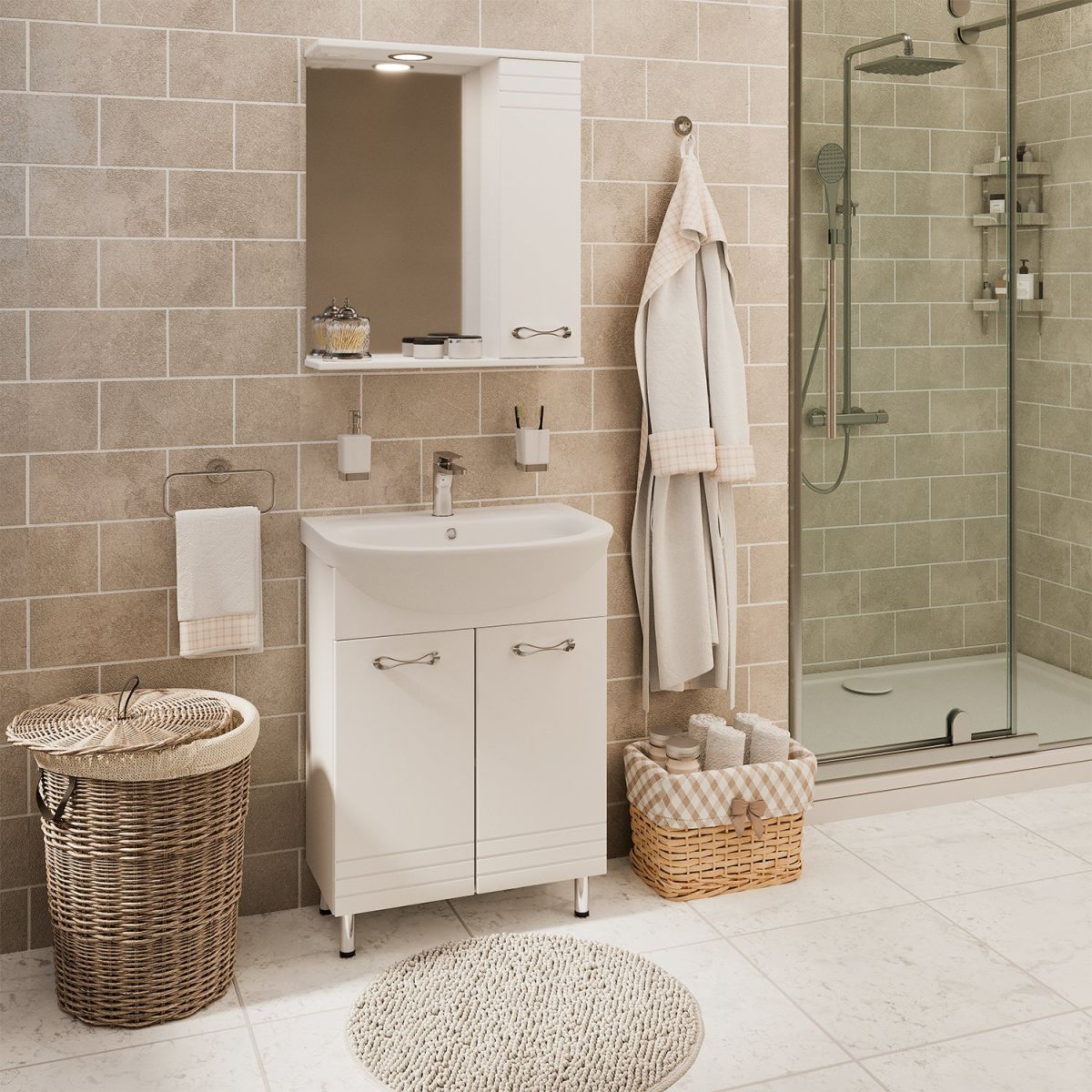 Корпус выполнен из белого ЛДСП, фасад МДФ с пленкой ПВХ.
